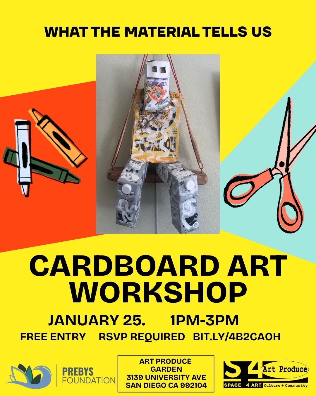 This free workshop is provided by Space 4 Art and sponsored by The Prebys Foundation. The Arts Ecosystem grant aims to bring more art funding to the San Diego Art Economy. The grant is part of the Prebys Foundation’s 2025 Emergency Arts Investment, which responds to significant challenges facing the region’s arts sector, including federal and state funding cuts, rising operational costs, and the need to preserve vital community spaces for creativity.